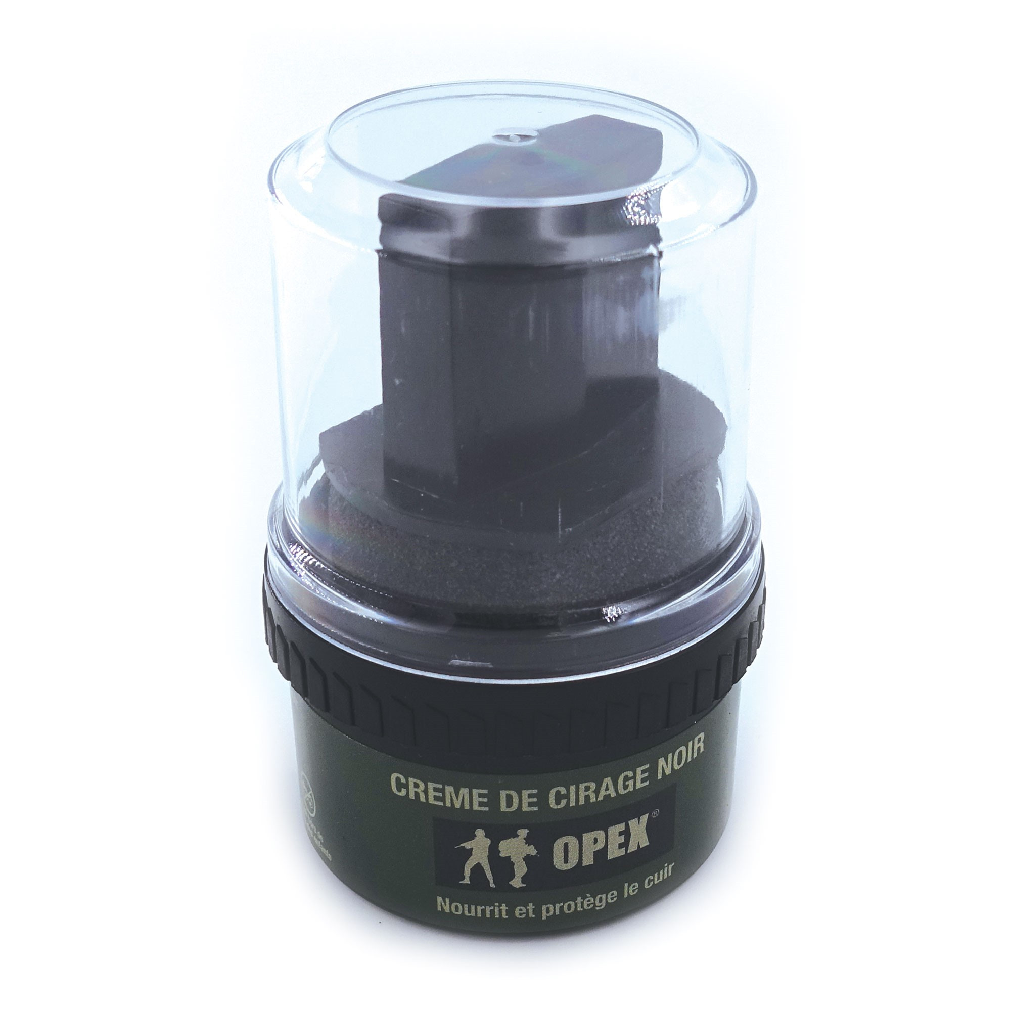Cirage noir pour RangersEntretenir les rangers militaires, comme les autres chaussures en cuir est indispensable, afin de les protéger, maintenir leur bon état et pour les conserver le plus longtemps possible. Pour cela, les produits de cirage adaptés sont la meilleure solution.Pour le confort de vos chaussures, OPEX vous propose sa crème de cirage pour rangers et chaussures en cuir, avec applicateur éponge- Nourrit et assouplit le cuir- Protège contre l’humidité, la boue et autres facteurs extérieurs.- Pot avec tampon applicateur de crème- A base de cire minérale et végétale mélangée.- Lustrage parfait sans frotter, en un seul passage- 55ml – Couleur : noir- Précautions: produits inflammable. Tenir hors de portée des enfants.Ingrédients : Pétrolatum, Huile minérale, Lanoline, cire d’abeille, Paraffine.Conseils d’application : Nettoyez les chaussures, frottez énergiquement, sans appuyer, à l’aide d’une brosse, pour ôter le surplus de saleté. Appliquer la crème de cirage sur le cuir sec, à l’aide de l’applicateur. Si nécessaire, polissez le cuir avec une brosse fine.
