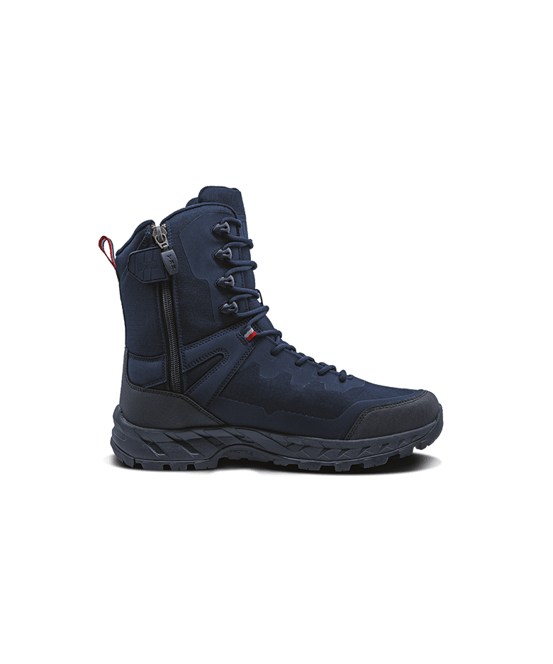 Chaussure de sécurité révolutionnaire, avec une tige en polyester recyclé respirant, une membrane imperméable, et un intérieur amovible pour l’absorption des chocs.