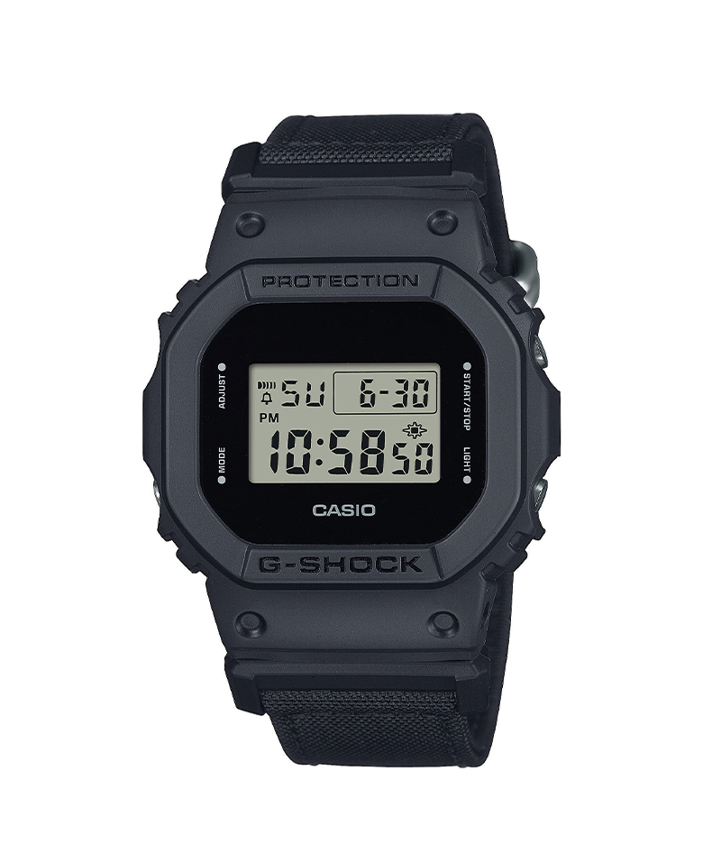La montre G-Shock 43 mm numérique allie robustesse et performance avec une étanchéité jusqu’à 200m, une autonomie de 5 ans et une résistance aux chocs. Elle est équipée d’un chronomètre précis, d’une alarme multifonction, d’un rétroéclairage LED et d’un bracelet en tissu Cordura® Eco, idéale pour les activités extrêmes.