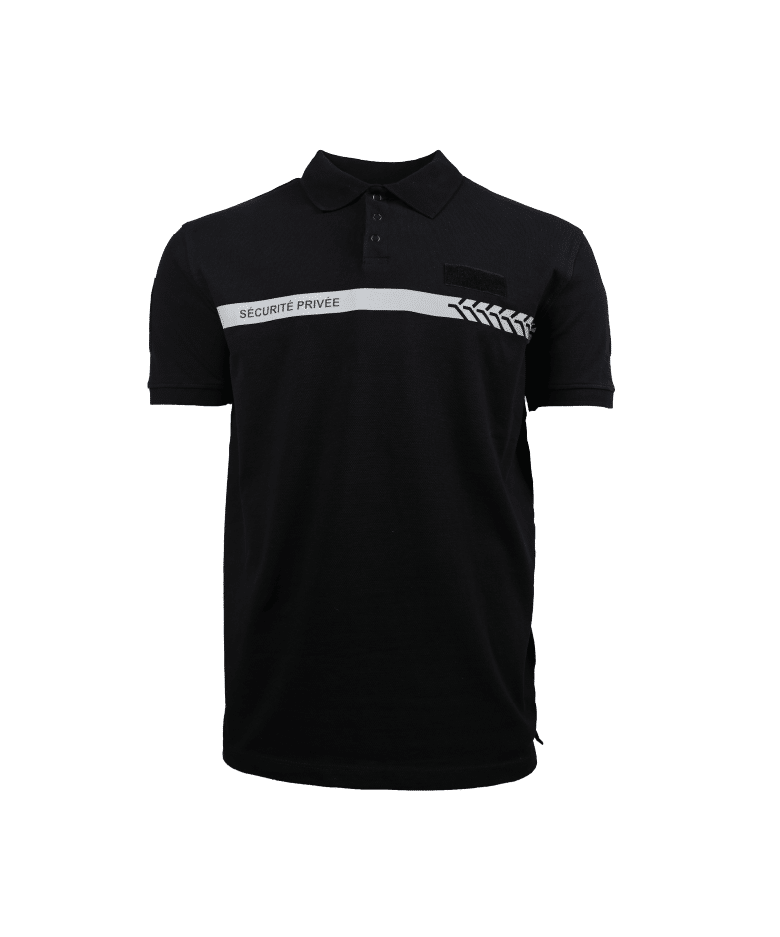 Polo manches courtes Sécurité Privée GK SAFETEK® en noir, disponible du XS au 4XL, avec marquages rétroréfléchissants, auto-agrippants pour badges, en tissu 100% coton certifié OEKOTEX pour un confort et une durabilité optimaux.