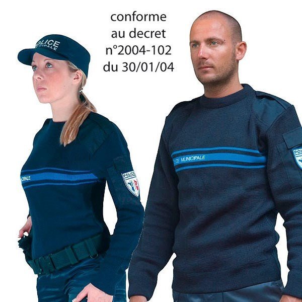 Pull grosse maille, idéal pour l?hiver pour patrouille en extérieur? 50% Acrylique 50% Laine? Encolure ronde ras de cou? Broderie « police municipale » en fil blanc sur bande bleu gitane? Renforts aux épaules et aux coudes en toile marine? Pattes d?épaule pour galons? Velcro® blason sur épaule gauche? Poche stylos manche gauche avec rabat velcro®Article réservé aux professionnels vendu sur présentation de justificatifs (carte professionnelle, pièce d’identité, justificatif de domicile)